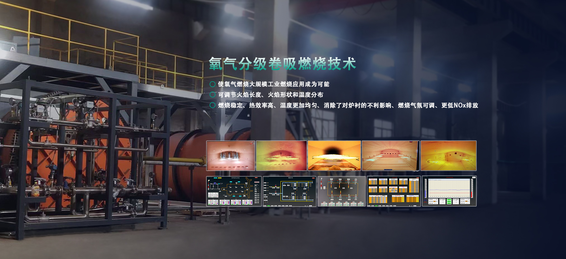 提供方案:成套熱能解決方案。高溫領(lǐng)域,采用全氧或富氧燃燒系統(tǒng),包含全氧燃燒器、燃?xì)?氧氣管路系統(tǒng)以及自動化控制系統(tǒng)